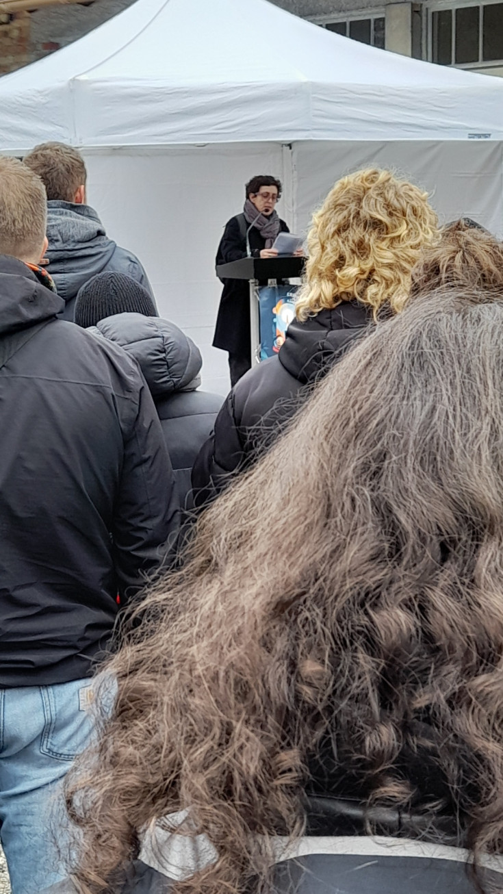 unter diesem Motto beging die DGB-Jugend Bayern das Gedenken an die Reichsprogromnacht vom 9.November 1939. Die Bezirksjugendsekretärin Anna Gemeiner betonte: "Wir begehen das Gedenken nicht weil wir dazu beauftragt sind, sondern weil wir unsere Zukunft sichern wollen". Sie konnte zahlreiche Gäste aus dem Bundestag (Carmen Wegge, SPD), Landtag (Katja Weitzel, SPD, Kata Schulze, Grüne), Stadtrat München (Simone Burger und Lena Odell, beide SPD), die SPD-Landesvorsitzende Ronja Endres und den DGB Landesvorsitzenden, Bernhard Stiedl. Erfreulich war die große Anzahl von jugendlichen Teilnehmern.